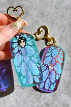 Printed on rainbow holographic acrylic with gold heart clip.